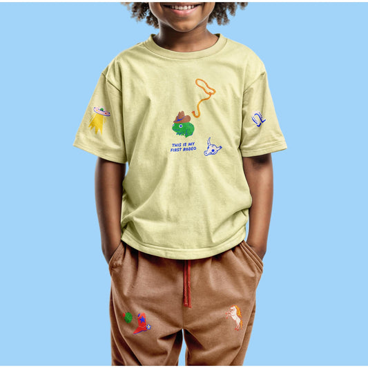 Hello I'm Three Kids in a Trench Coat Name Tag Iron-On Transfer Sheet