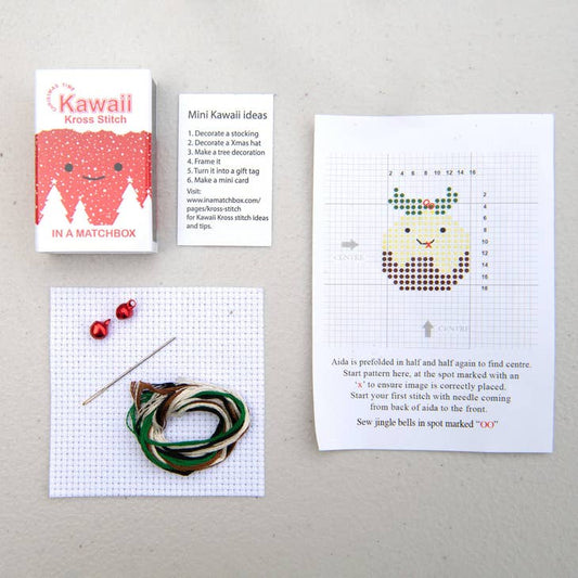 Kawaii Christmas Pudding Mini Cross Stitch Kit in a Matchbox