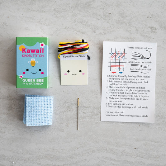 Kawaii Queen Bee Mini Cross Stitch Kit in a Matchbox