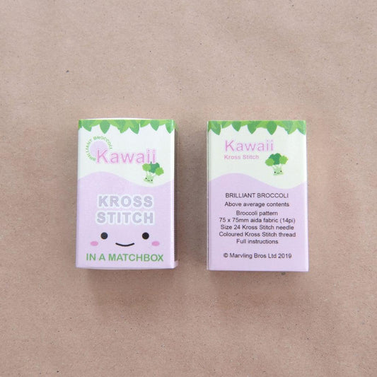 Kawaii Broccoli Cross Stitch Kit in a Matchbox