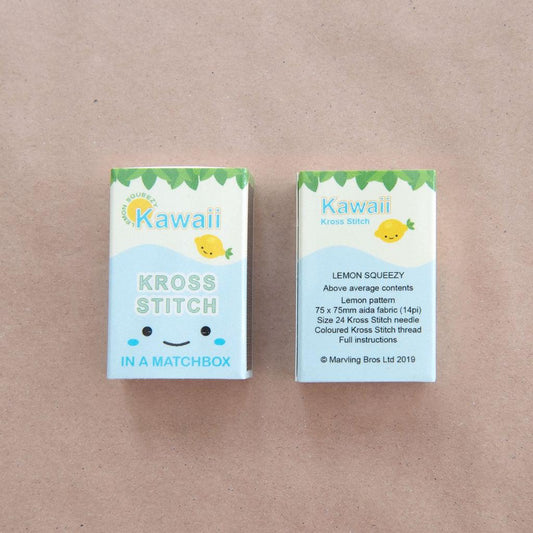 Kawaii Lemon Mini Cross Stitch Kit in a Matchbox