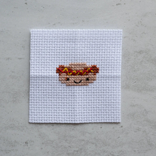 Kawaii Hot Dog Mini Cross Stitch Kit in a Matchbox