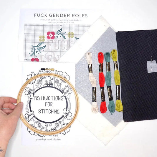 Fuck Gender Roles, 6" Cross Stitch Kit