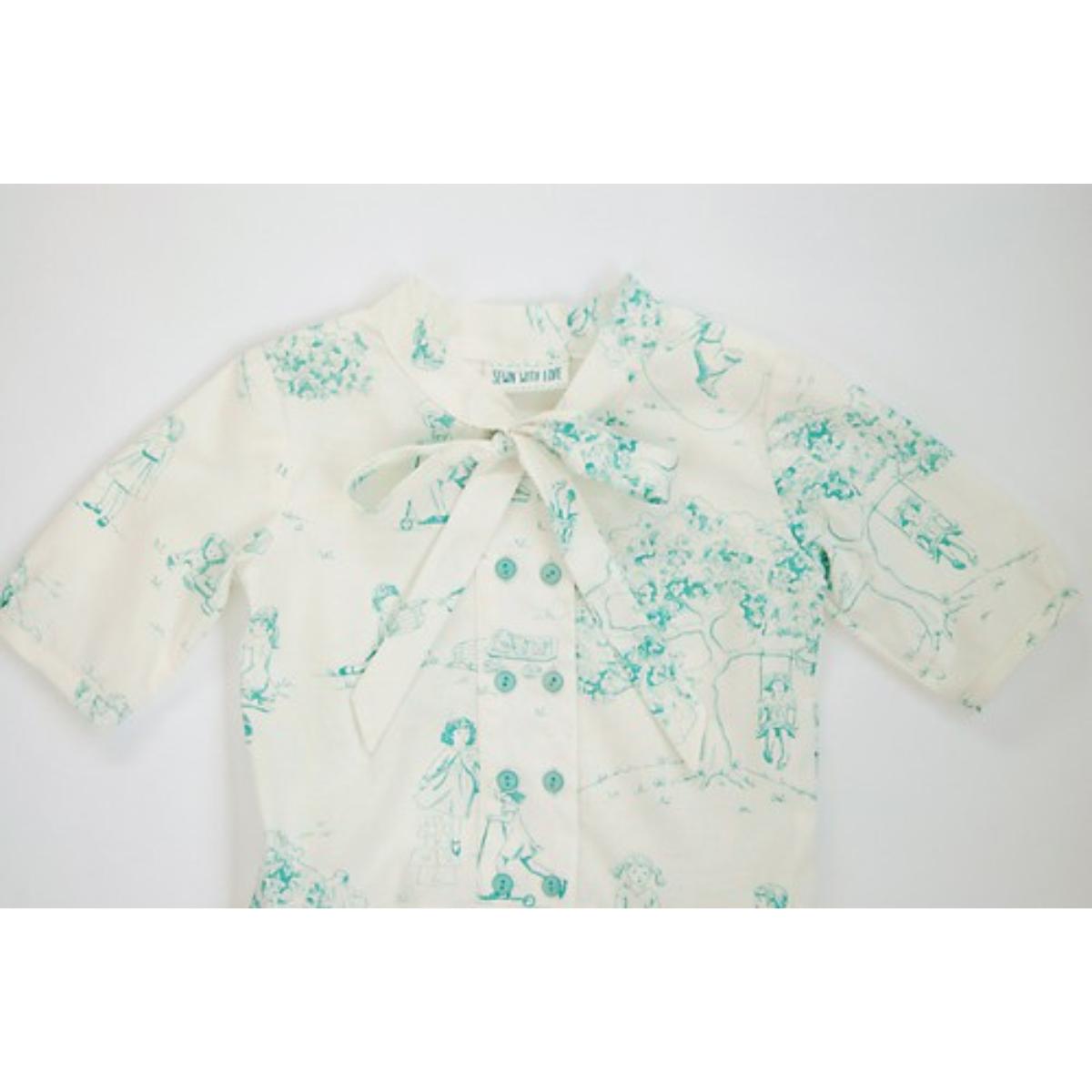 What better way to spend a cool afternoon than going apple picking? The pattern for this versatile dress includes a wide button placket, a bow at the neck, bias bound sleeves, and a dropped waist for a vintage feel.