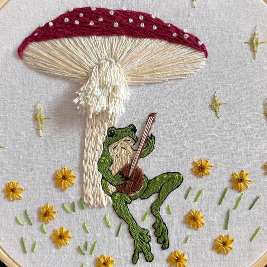 Toadstool Serenade Frog & Mushroom Embroidery Kit