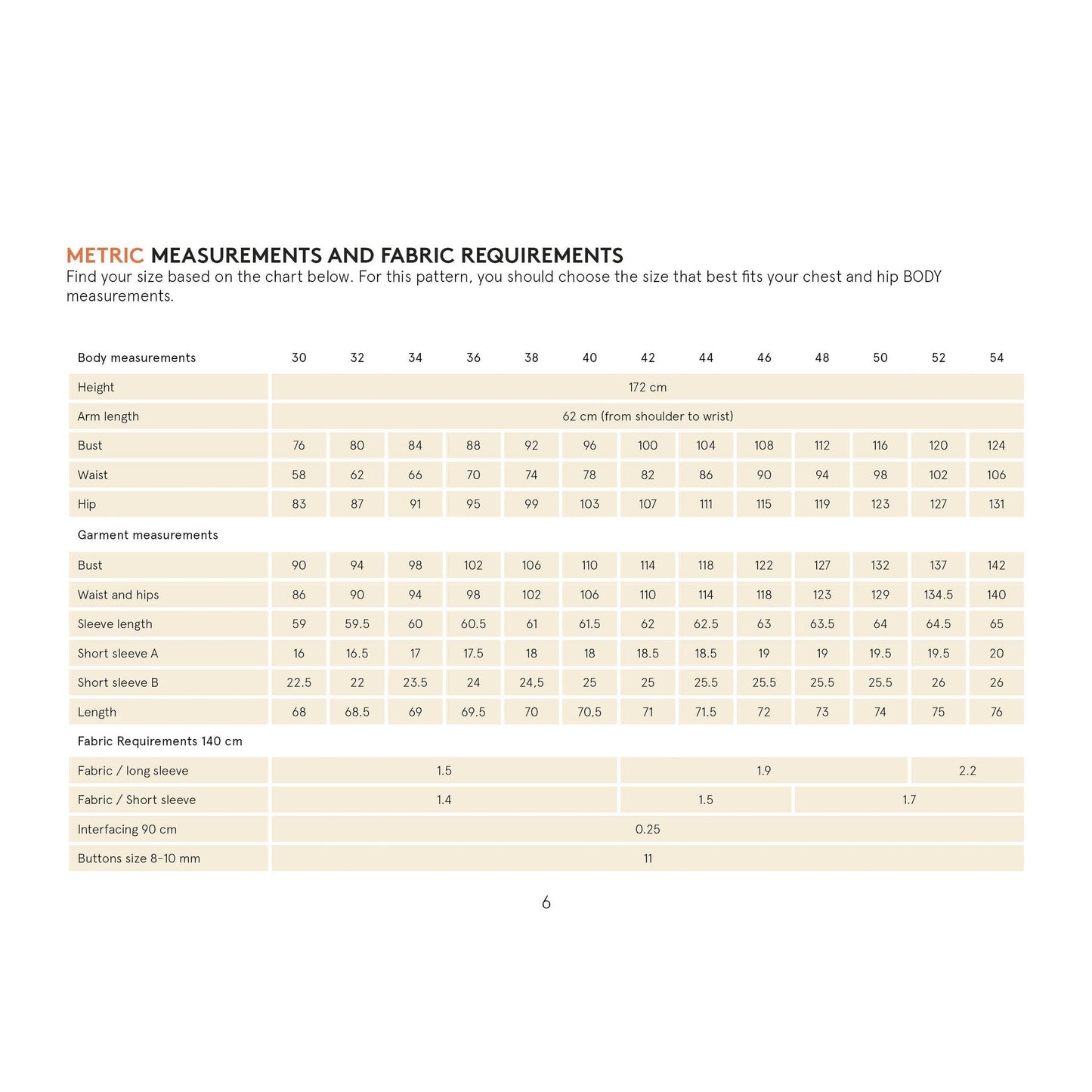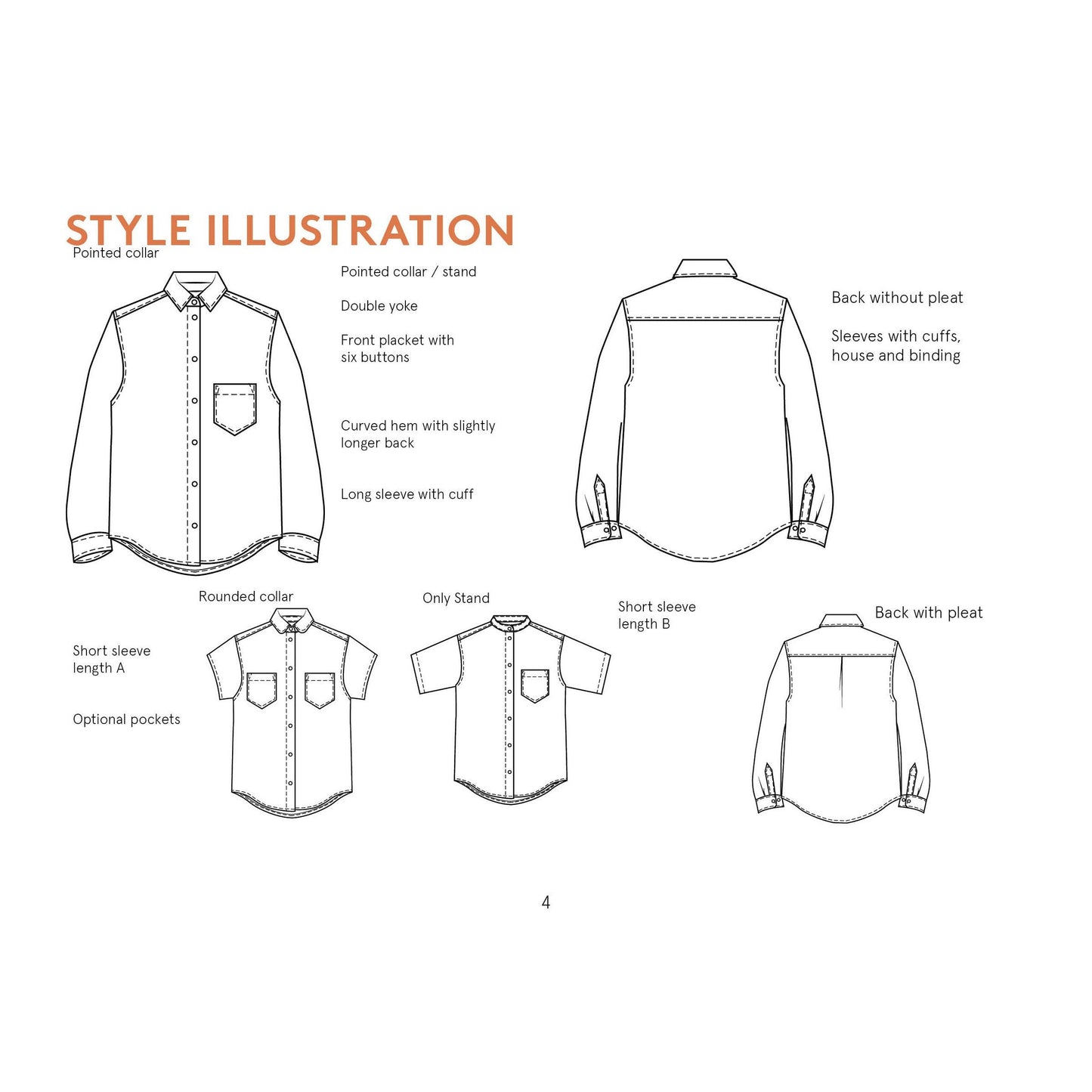 Wardrobe By Me's Anna shirt sewing pattern is a classic, relaxed-fitting button shirt with a yoke, collar, and stand. Anna Shirt has cuffed sleeves with both a house and a slit. Make the shirt with a pointed or curved collar or just the stand. The hem on the Anna Shirt sewing pattern is curved and slightly longer in the back. Choose the pleated or straight back.