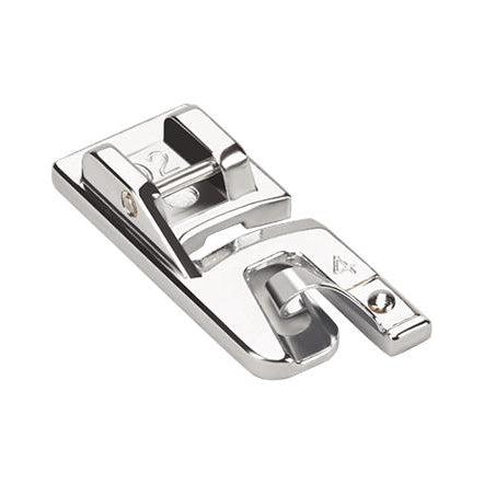 This special presser foot serves the purpose to create professional-looking seams. It folds the fabric twice which results in a nice roll hem which is then properly fixed by the needle with a straight stitch.