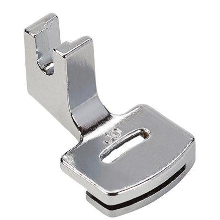As the sole of this foot does not lie flat on the feed dog, the Gathering Foot feeds the fabric unevenly. Therefore a charming gathering effect results while sewing.