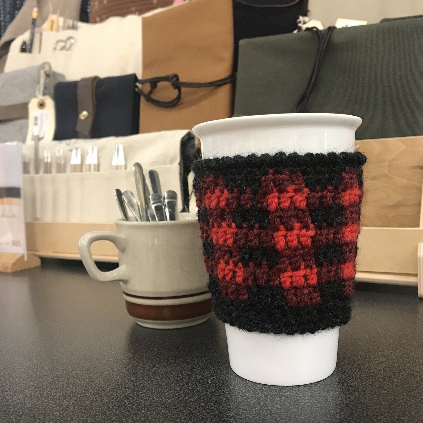 We wanted a quick colorwork project for crochet and what could top a cup cozy in buffalo plaid? Worked in three colors this pattern will help you learn the basics of crochet colorwork and wraps up with the crab stitch. A quick project that will inspire you to take on more challenging colorwork.