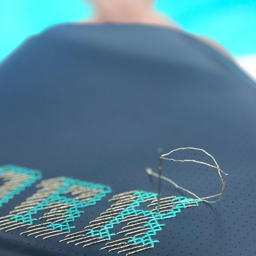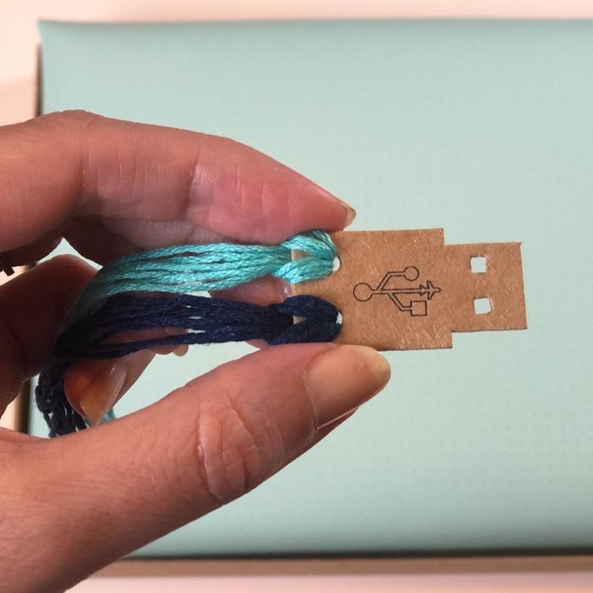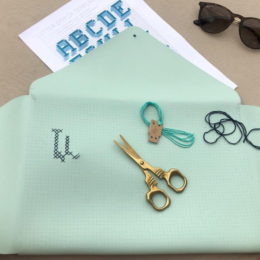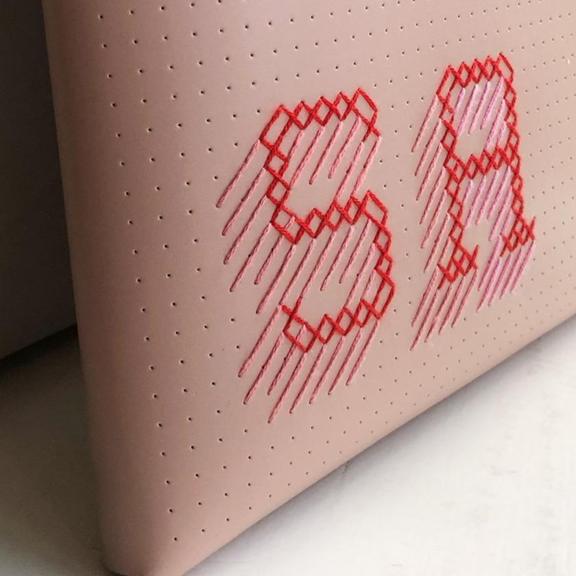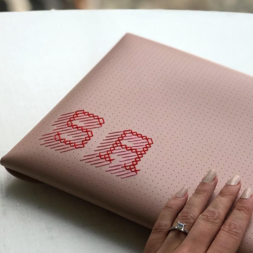 The laptop sleeve is perforated all over, designed as a cross stitch kit to be sewn and personalized with the threads included. The envelope style pouch opens out fully so it can be stitched all over with any cross stitch design. Sew your own initials in 3D monogrammed font to create an easy personalized cover that is totally unique.