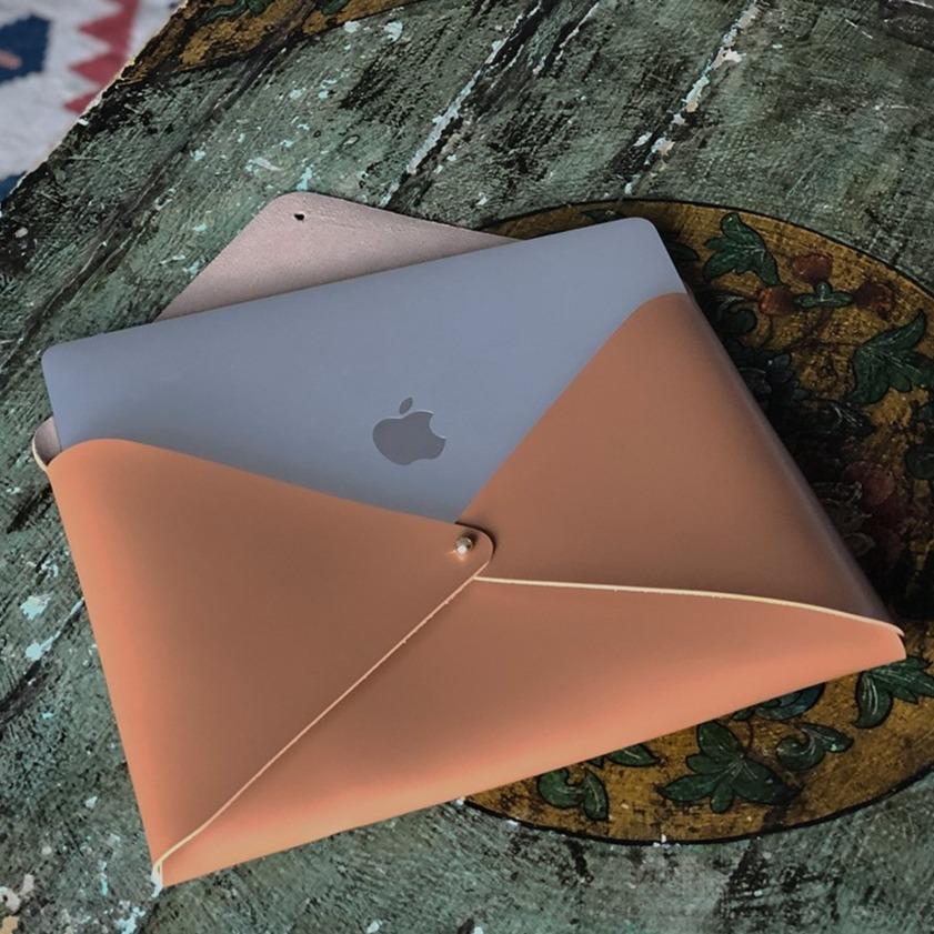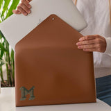 Store your laptop in style while protecting it inside the soft faux suede interior, held in place with a classic brass button. We love this subtle mint color which looks cool and stylish in your handbag, or carried like a portfolio case.