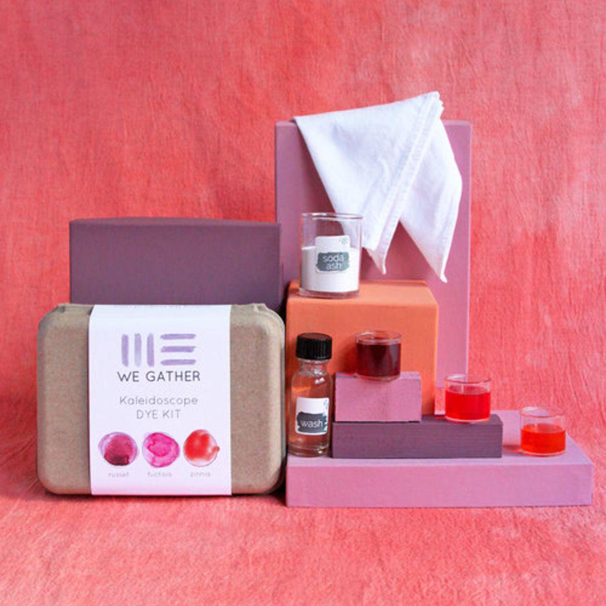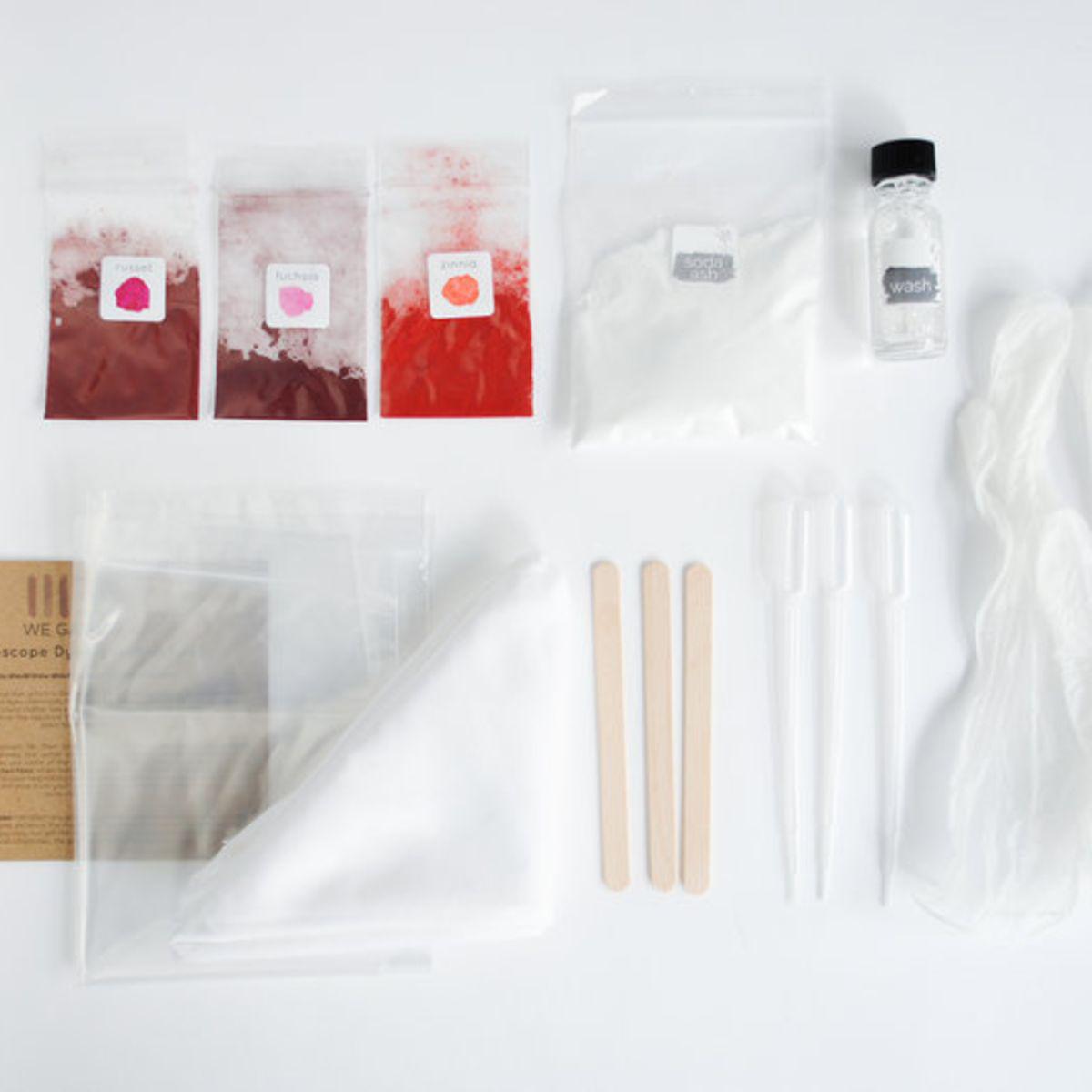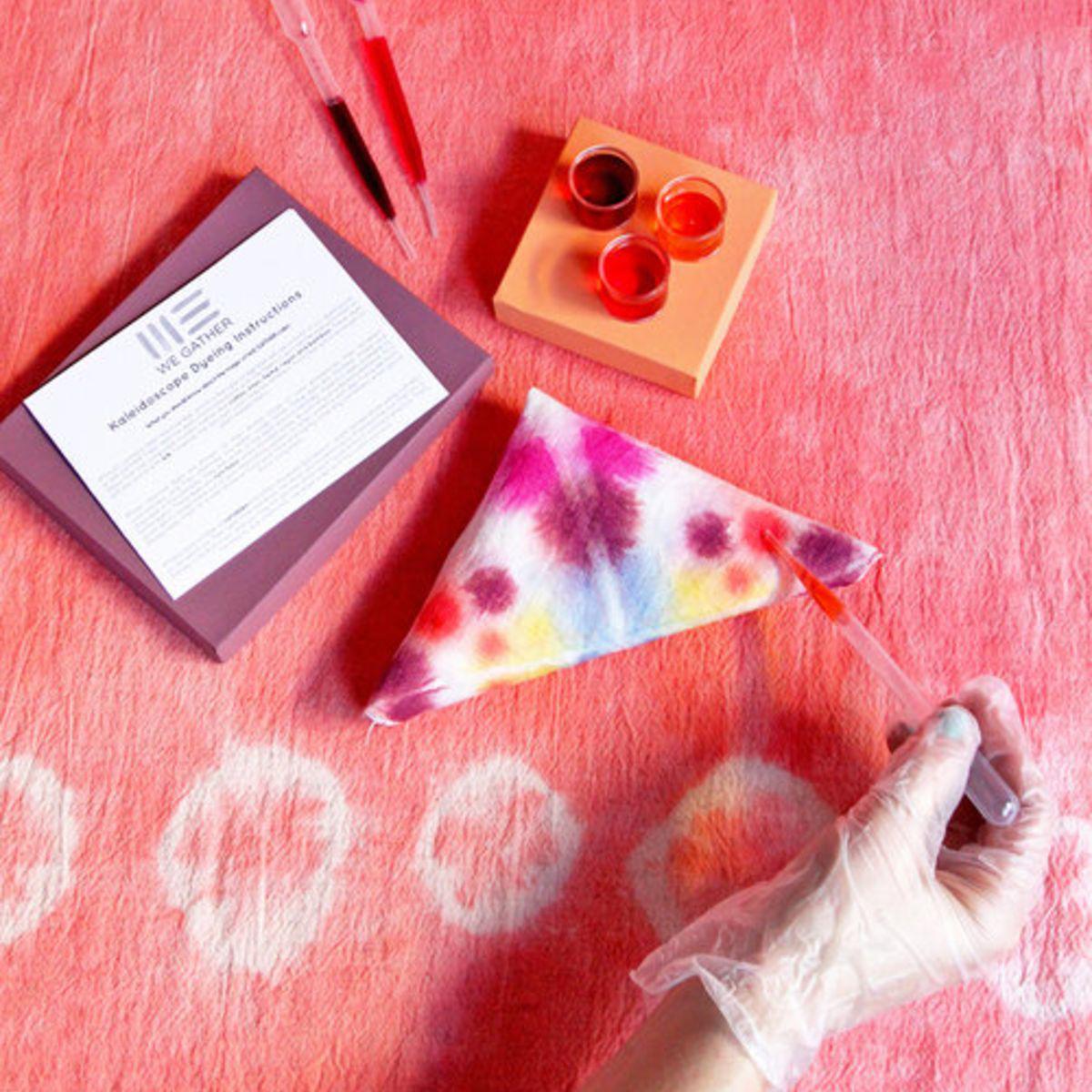 Your head and your eyes will spin at the stunning results and the ease of Kaleidoscope Dyeing, WE GATHER’s low-commitment, low-impact dyeing method. This kit walks you through the basics of working with fiber reactive dyes all while creating a kaleidoscope of color on a cotton scarf.