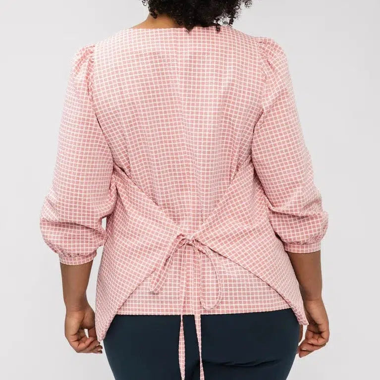 The Lilja is a charmingly unique wrap garment that comes in three different variations: an ankle-length dress, a pinafore dress and a blouse. You can sew any of the variations either sleeveless or with bohemian, ¾-length puff sleeves. You can also choose either a round or square neckline, or a combination of both. The round neckline can be finished with either a facing or a binding with back vent and ties. This versatile garment is both simple to sew and easy to wear.
