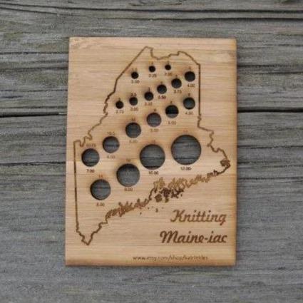 Show your pride for Maine with this Maine state shaped knitting needle gauge. Inspired by vintage travel postcards, state knitting needle gauges make a great gift for your best knitting friend and useful tool for your own knitting bag.