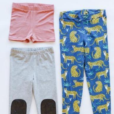 The ultimate pair of basic leggings with elasticated waist. Pattern sits below the natural waist and features two lengths, two waistbands, optional cuffs and four knee patch options.
