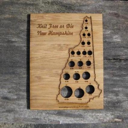 Show your pride for New Hampshire with this New Hampshire state shaped knitting needle gauge. Inspired by vintage travel postcards, state knitting needle gauges make a great gift for your best knitting friend and useful tool for your own knitting bag.
