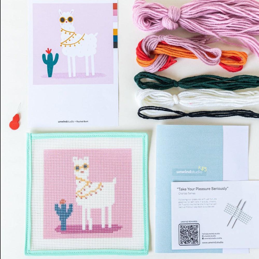 "No Drama Llama" is a cute llama design for your child to learn how to needlepoint!