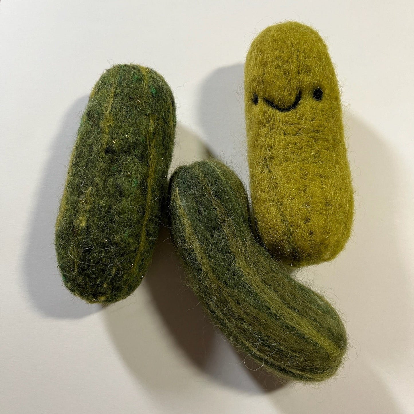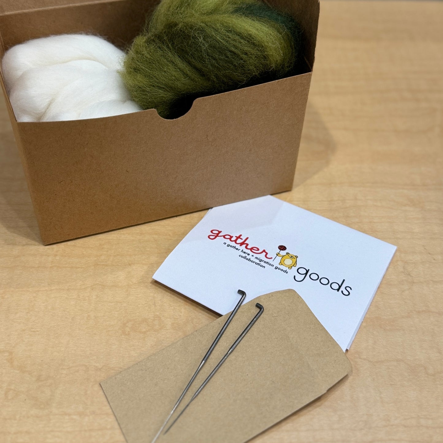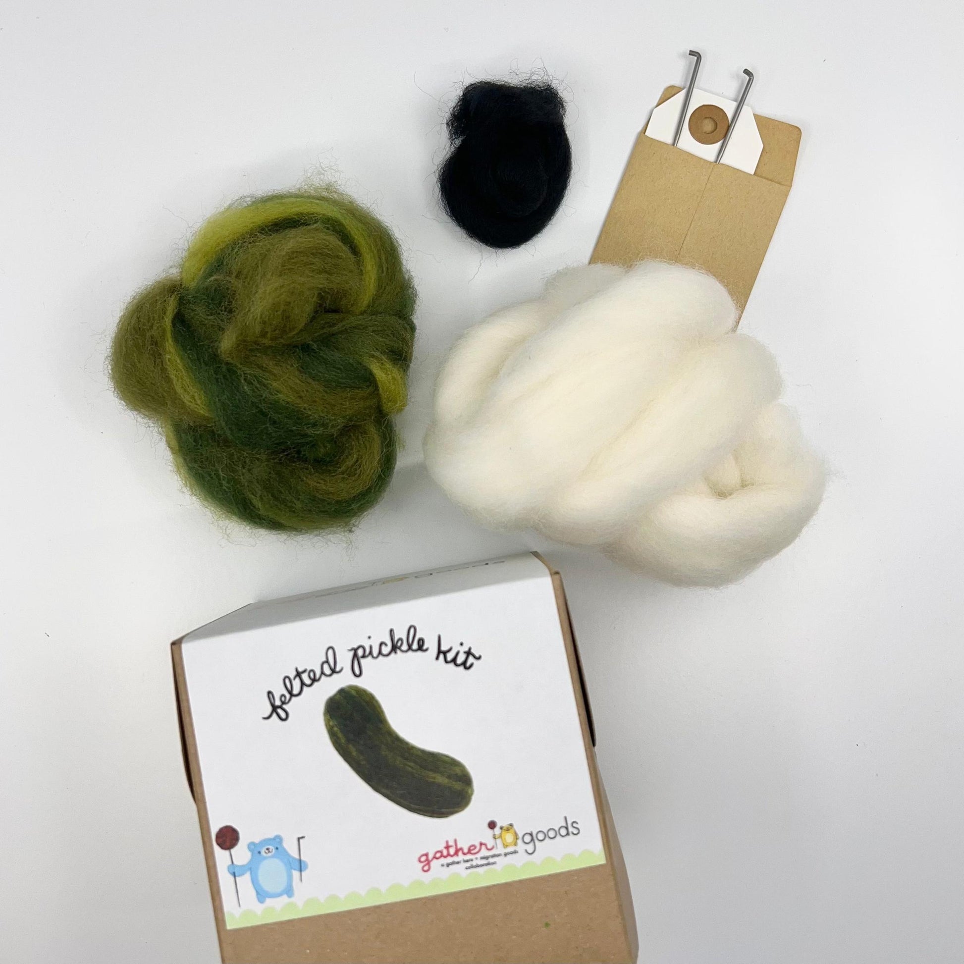 gather here and migration goods have teamed up to create needle felting kits! Discover the therapeutic craft of needle felting and get stabbing. The classic pickle which launched Eling's needle felting workshops -- traditional shape for an ornament but equally cute as a decorative friend year round or as a companion to your charcuterie board displays! Suitable for beginners and above, learn to make this traditional holiday ornament shape and then embellish with extra texture, details or even a face!